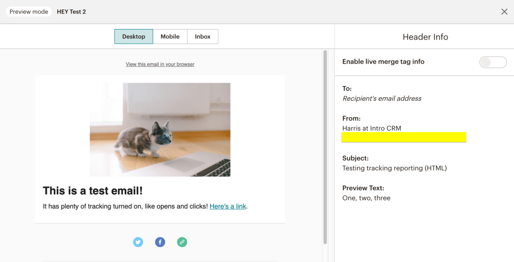 Another thing to note is in the image above is that the Preview text from MailChimp does come through in the HTML email.