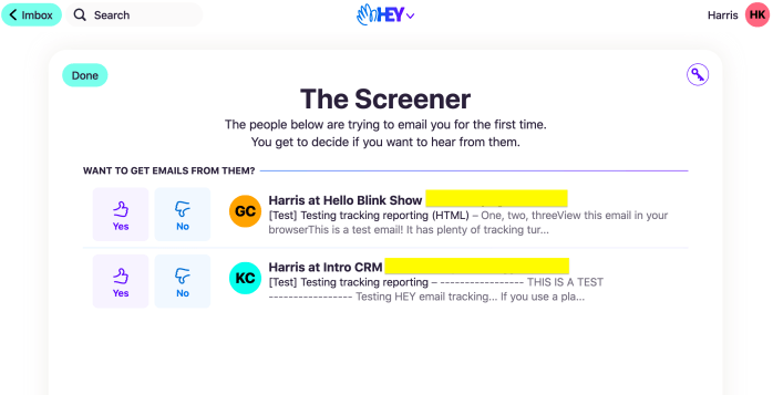 Let’s get back to HEY, remember The Screener? It doesn’t just screen all individual emails. Here’s what it does do: