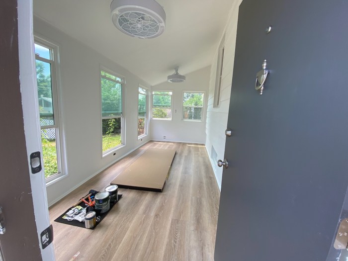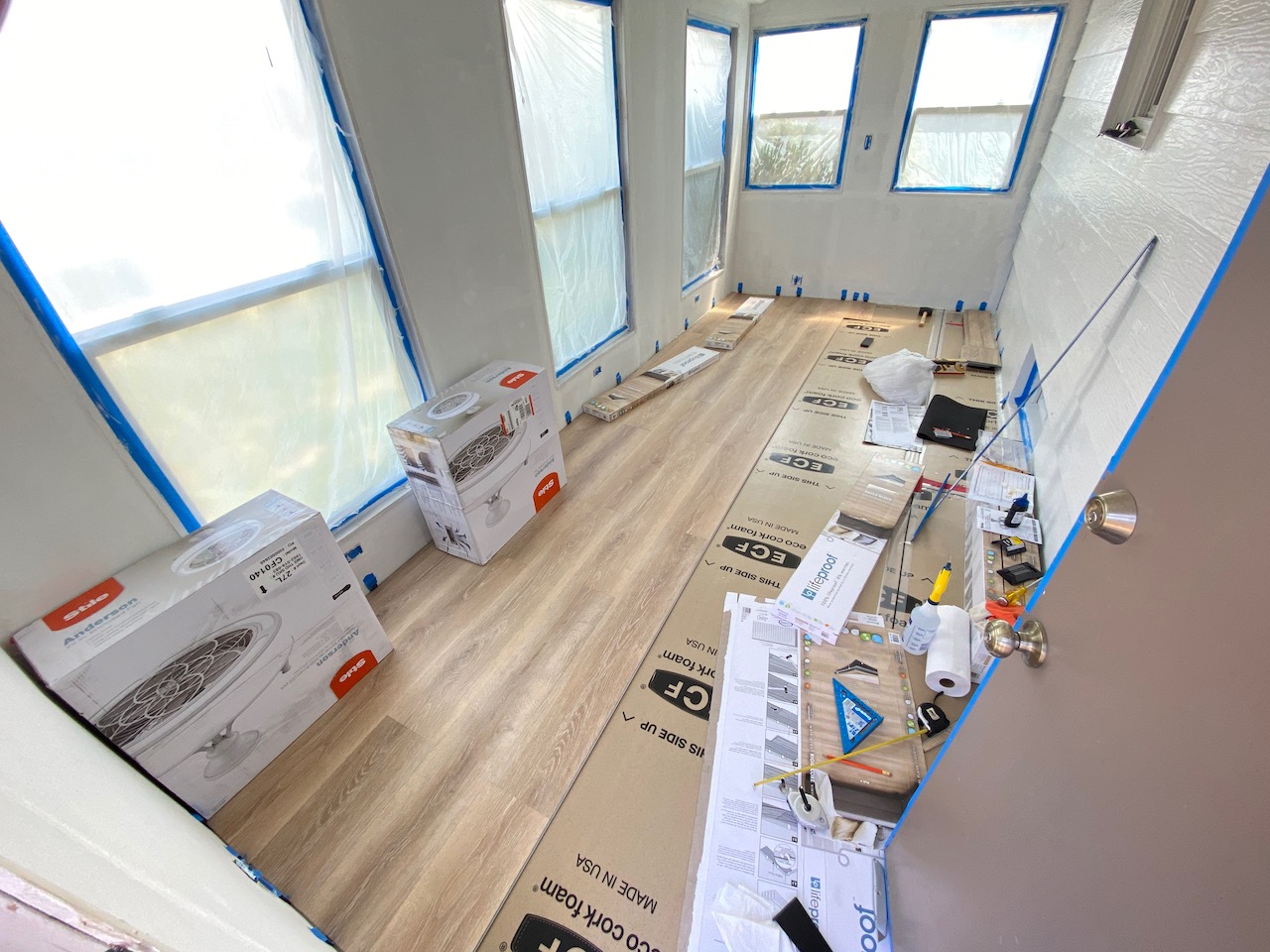 I’m using this room as an office for my business, but it could be used for any number of things. I decided to go with vinyl because of the ease of maintenance and ability to have the room be a few different things in the future.