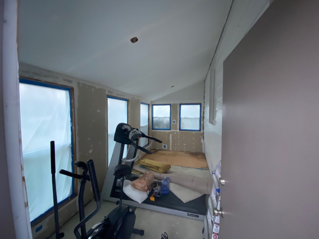 Decided to do the drywall repair and removing the carpet and under layment in parallel. Also took out the light fixtures. Making great progress. Though tearing things down is always easier than building things up, much work to be done still.